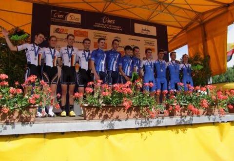 Zwiehoff, der aufgrund seiner bisherigen guten Saisonleistungen von Bundestrainer Peter Schaupp als U23-Fahrer nominiert wurde, war vor dem Start entsprechend nervös. „Die Nominierung für die Staffel bedeutet immer eine besondere Auszeichnung, daher bin ich sehr stolz“, kommentierte der junge Essener seine Aufstellung. „Ich werde alles tun, das Vertrauen, das in mich gesetzt wird, zu rechtfertigen“. Als Startfahrer sollte er der deutschen Mannschaft eine gute Ausgangsposition verschaffen und ohne Respekt ging Zwiehoff auch in das Rennen, in dem mit ihm u.a. Olympiamedaillengewinner das Rennen aufnahmen. Zur Überraschung der Zuschauer eroberte Zwiehoff bis zur Hälfte seiner Runde sogar die zweite Position, ehe ihn der Defektteufel ereilte. Durch starke Schläge in einer Abfahrt hatte sich Zwiehoff´s Hinterrad gelöst, so dass es beim Anbremsen in eine Kurve aus dem Rahmen herausrutschte. „In diesem Moment habe ich schon gedacht, dass alles aus ist“, erläuterte Zwiehoff die Situation. „Ich habe mich aber gezwungen ruhig zu bleiben, zunächst geschaut, was passiert ist, dann das Hinterrad wieder eingesetzt und bin dann hinter den anderen Fahrern her. Der Zeitverlust hielt sich so in Grenzen, auch wenn ich dadurch 6 Plätze verloren habe.“ Im zweiten Teil der Runde ging Zwiehoff dann volles Risiko und konnte den Rückstand bis auf 30 Sekunden verkürzen und als 6. auf den Juniorenfahrer Tobias Eise aus Hessen übergeben. Dieser fuhr, genauso wie die deutsche Frau, Helen Grobert, ein fantastisches Rennen. Als viertplatzierte Mannschaft übernahm Elitefahrer Moritz Milatz, der bereits einmal Europameister war, den Staffelstab. Auf seiner Runde gelang es ihm dann die vor den Deutschen liegenden Schweden und die spanische Mannschaft noch abzufangen, so dass Deutschland hinter den Franzosen Vize-Europameister wurde.