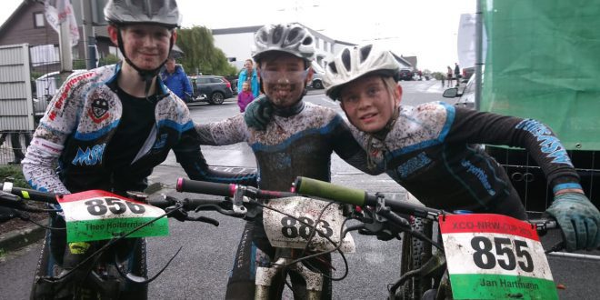 Durch einen Sturz in der U15 kam es zu einer Zeitverzögerung so dass unsere U13 Fahrerinnen und Fahrer lange auf ihren Start warten mussten. Die Strecke wurde zunächst gesperrt. Die Veranstalter entschieden, die Wurzelpassage herauszunehmen und die Runde zu verkürzen. Phillip Krüger kam mit den schwierigen Bedingungen am besten zurecht und wurde mit über 30 Sekunden Erster. Niclas Bösing belegte Platz 5. Tiago Rützenhoff hatte Pech: Nach einem Sturz musste er mit schief stehendem Lenker weiterfahren, konnte das Rennen jedoch als Sechster beenden. Hier die weiteren Platzierungen: Carlos Schenk Platz 9, Theo Holtermann Platz 12, Jan Hartmann Platz 14, Nevio Manca Platz 17 und Finjas Stempel Platz 20