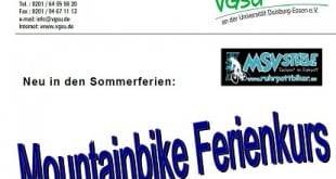 Dieser Ferienkurs – in Kooperation mit dem Mountainbike Sportverein Essen-Steele 2011 e.V. – wird Jungen und Mädchen für den Mountainbikesport begeistern. Im abenteuerlichen Gelände werden die Kinder spielerisch an das Fahren und Training mit dem Mountainbike herangeführt. Im Vordergrund steht die Fahrtechnik im Gelände mit Fokus auf Balance halten, Bremsen, Kurventechnik und …